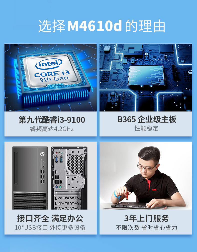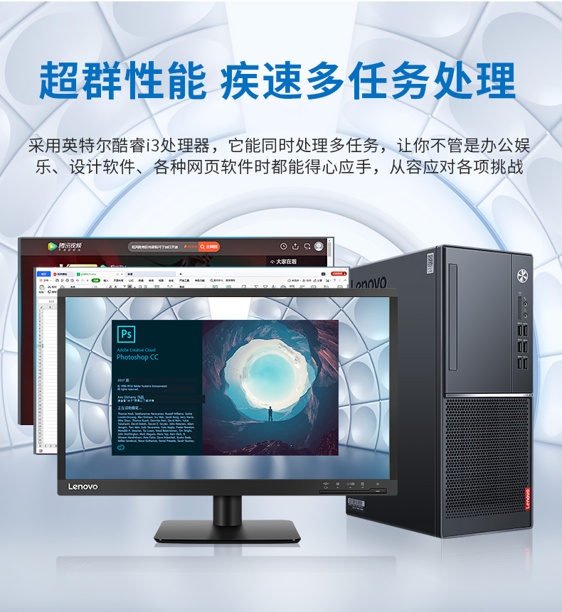 聯想 Lenovo 揚天M4610d 英特爾酷睿九代i3四核 網課家用商務辦公臺式電腦整機 21.5英寸全高清屏