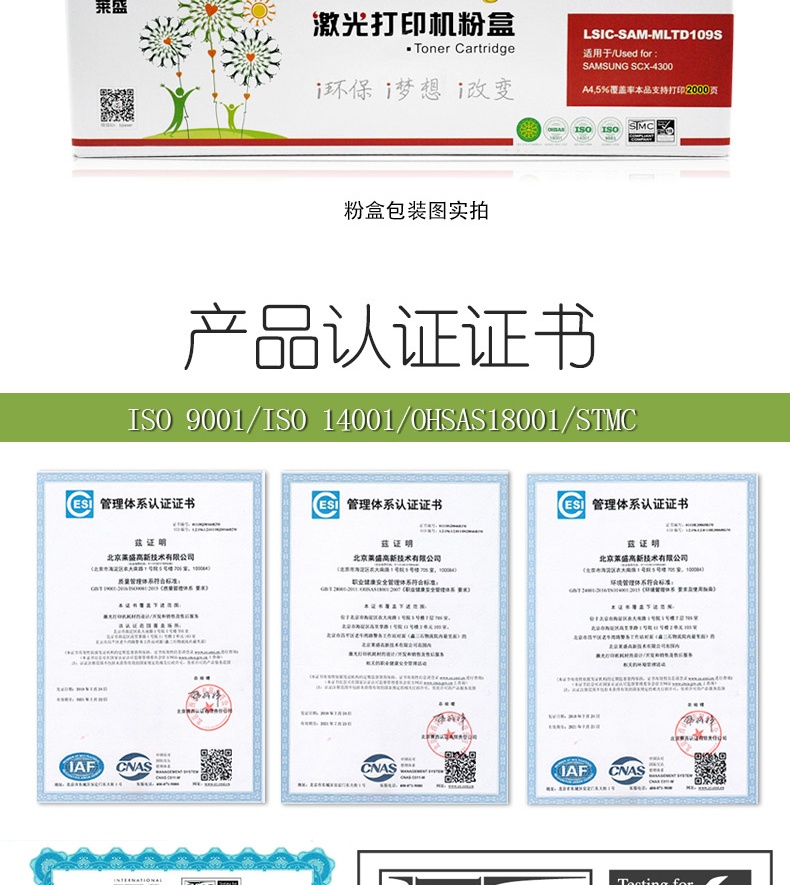 萊盛 iCartridge LSIC-SAM-MLTD109S 硒鼓/粉盒 黑色 適用于 三星 SAMSUNG SCX4300
