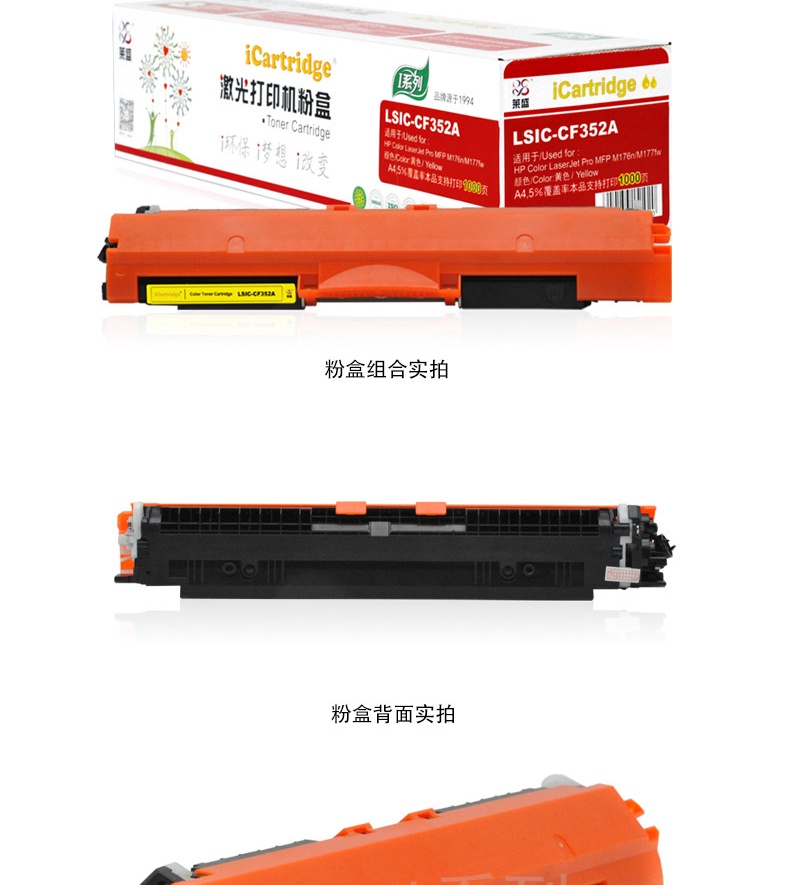 萊盛 iCartridge LSIC-CF352A 硒鼓/粉盒 黃色 適用于 惠普 HP Color LaserJet Pro MFP M176n/M177fw