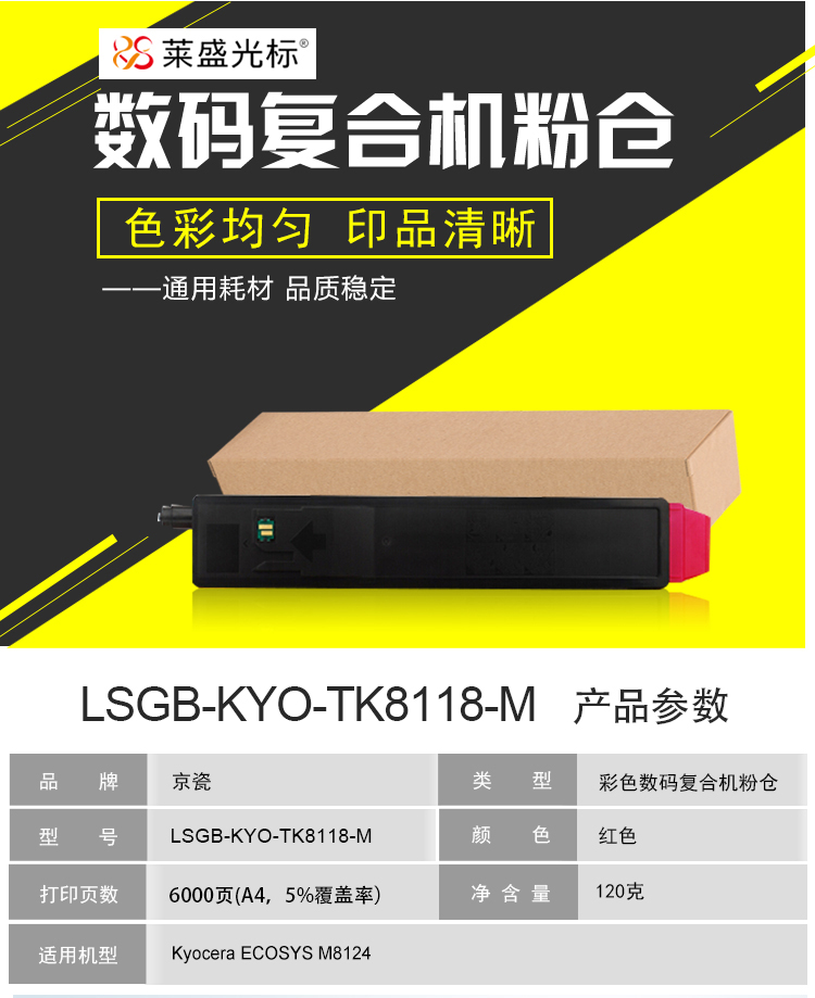 萊盛光標 LSGB-KYO-TK8118-M 硒鼓數碼粉倉 適用于Kyocera ECOSYS M8124 紅色