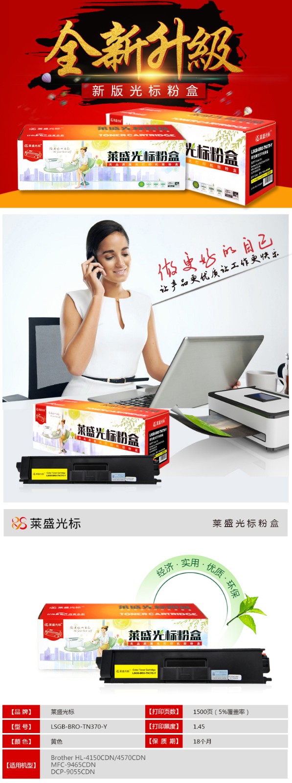 萊盛光標LSGB-BRO-TN370-Y黃色粉盒 萊盛兄弟HL-4150CDN/4570CDN/MFC-9465CDN/DCP-9055CDN