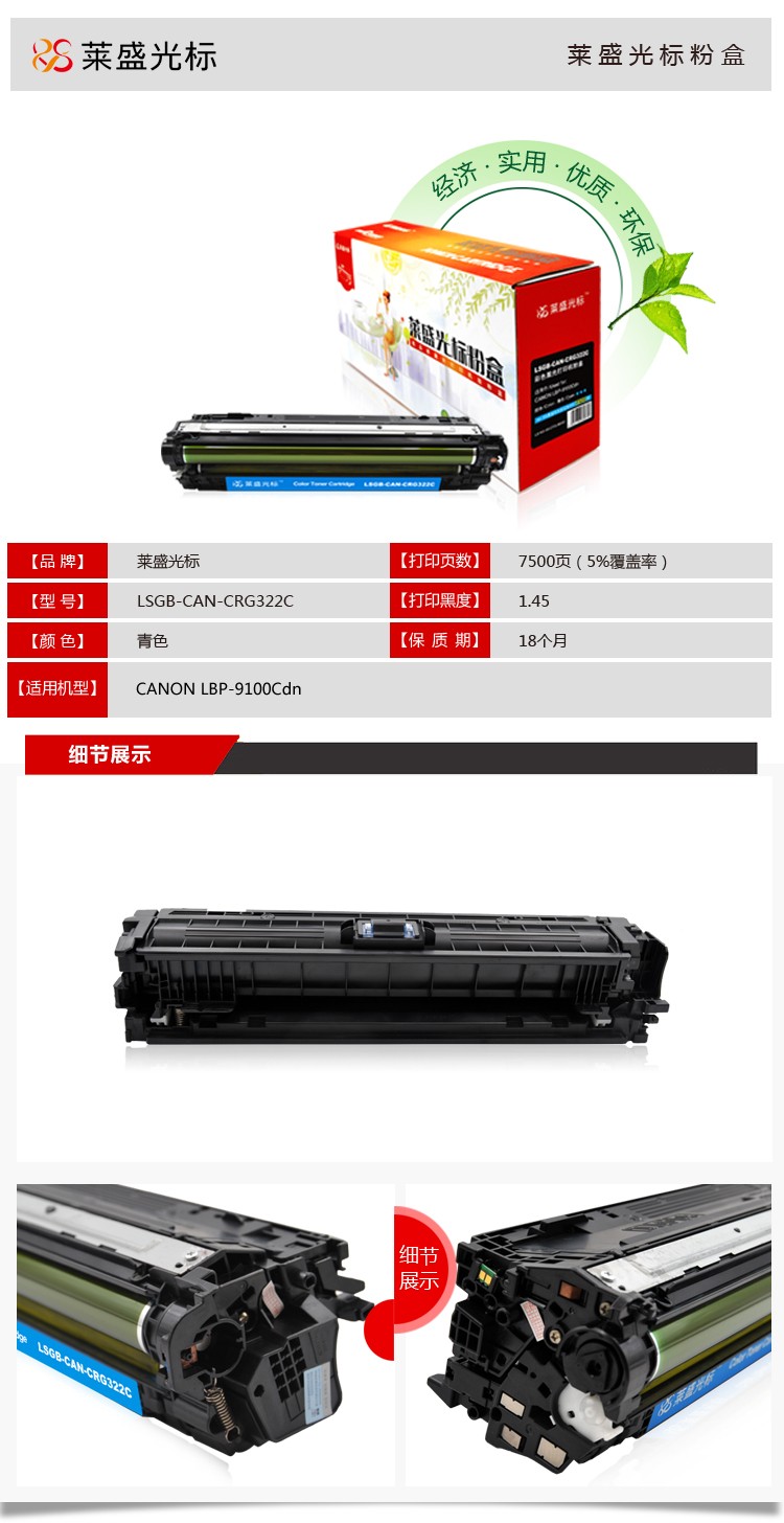 萊盛光標LSGB-CAN-CRG322C 青色粉盒 萊盛佳能 LBP-9100Cdn 青色粉盒
