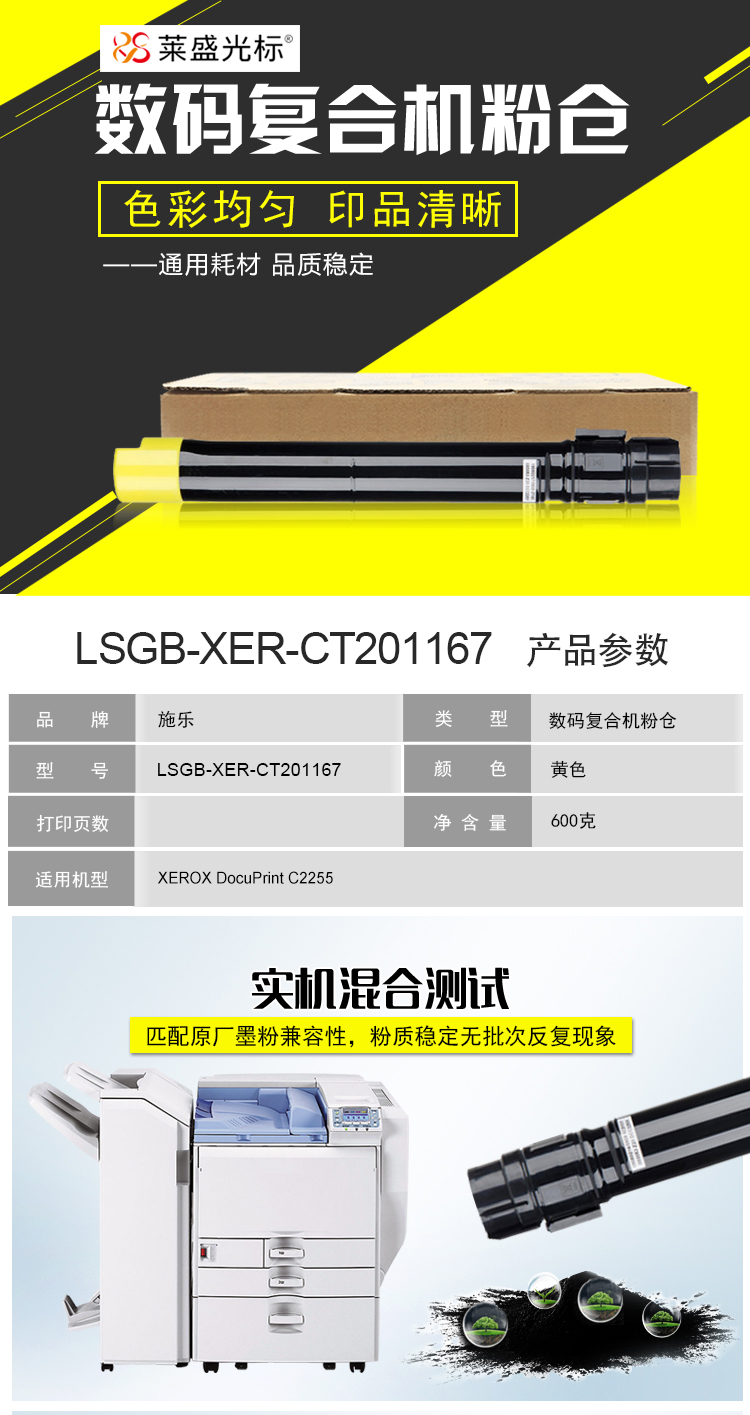 萊盛光標 LSGB-XER-CT201167硒鼓數碼粉倉適用于 XEROX DocuPrint C2255 黃色