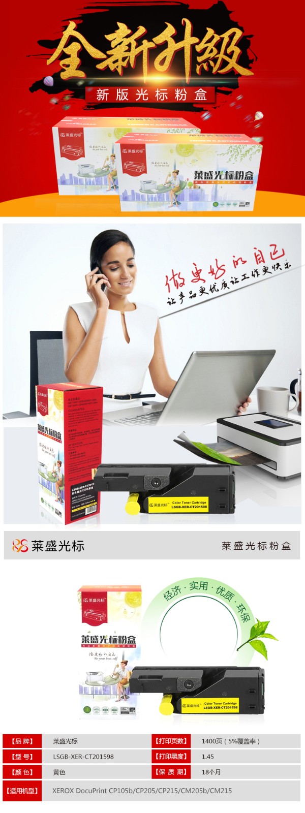 萊盛光標LSGB-XER-CT201598黃色粉盒 施樂CP105b/CP205/CP215/CM205b/CM215 黃粉盒