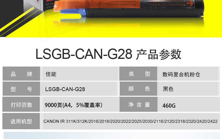 萊盛 光標LSGB-CAN-G28黑色粉盒適用于CANON IR 2016/2318/2318L/2320/2420/ 黑色