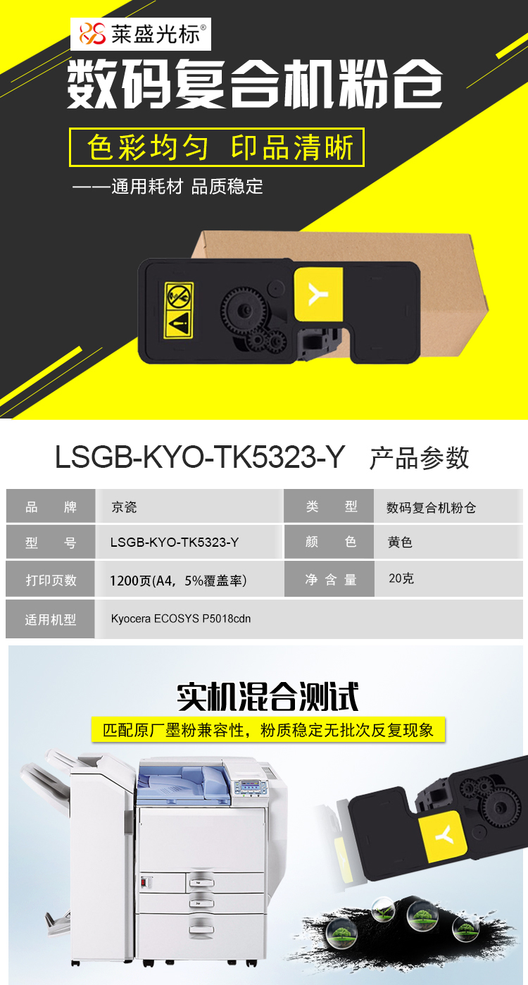 萊盛光標(biāo) LSGB-KYO-TK5323-Y硒鼓適用于京瓷Kyocera ECOSYS P5018cdn