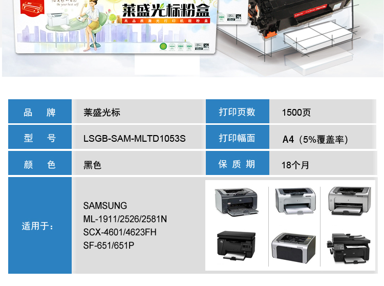 萊盛 光標 LSGB-SAM-MLTD1053S黑色硒鼓適用SAMSUNG ML-1911/2526/2581 黑色