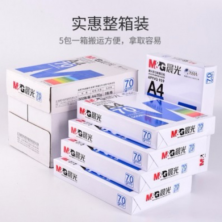 晨光(藍晨光) A4紙打印紙復印紙 整箱70g打印紙白紙草稿紙辦公用品 70g 5包裝 共2500張(藍晨光)
