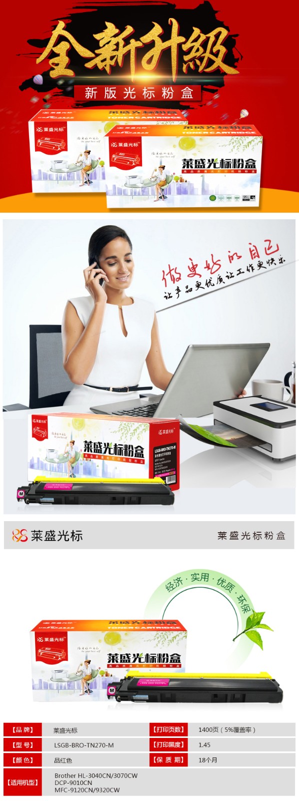 萊盛 光標LSGB-BRO-TN270-M紅色粉盒 萊盛兄弟HL-3040CN/3070CW/DCP-9010CN/MFC-9120CN/9320CW