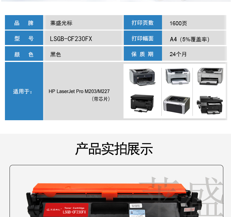 萊盛 光標 LSGB-CF230FX 硒鼓 適用于惠普HP LaserJet Pro M203/M227 黑色
