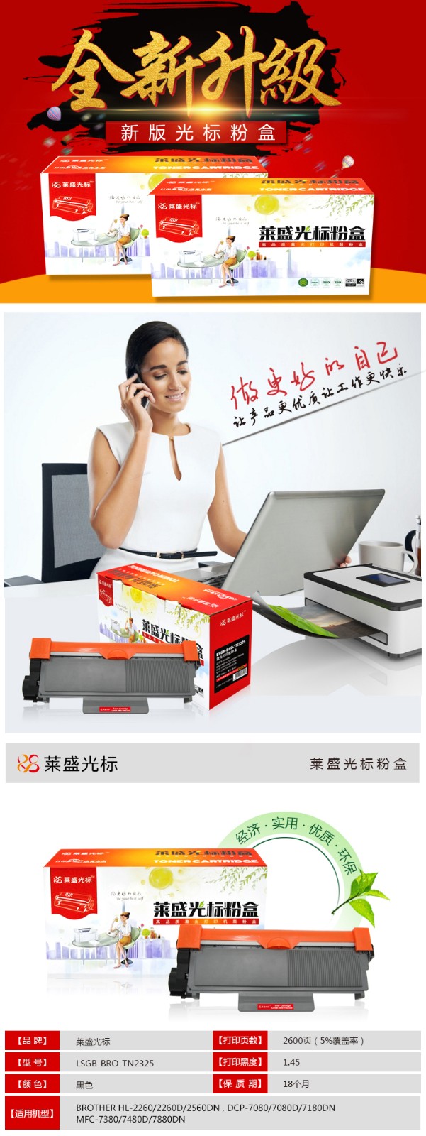萊盛光標LSGB-BRO-TN2325粉盒 萊盛兄弟HL-2260/2260D/2560DN/DCP-7080/7080D/7180DN/MFC-7380/7480D/7880DN