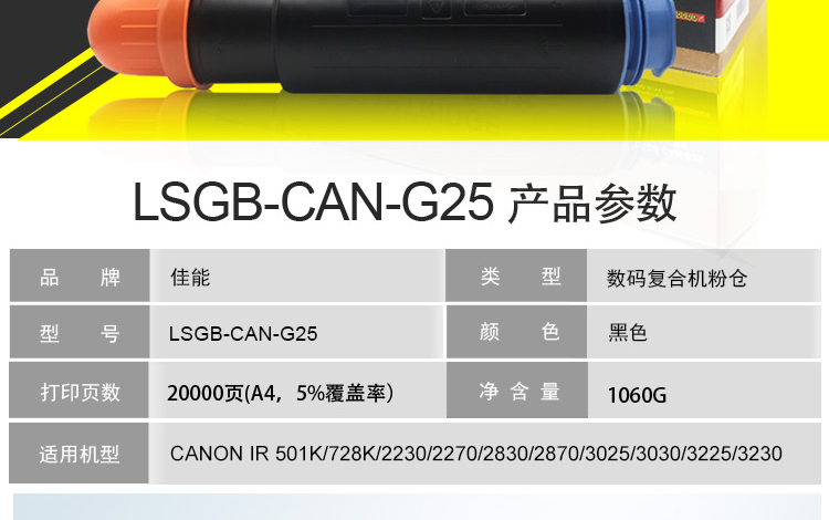萊盛 光標LSGB-CAN-G25黑色粉盒適用于CANON IR2230/2270/2870/3025/3030/501K 黑色
