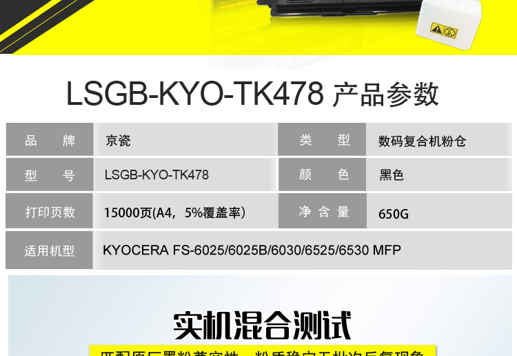 萊盛 光標LSGB-KYO-TK478黑色粉盒適用KYOCERA KM-6025/6030/6525/6530 黑色