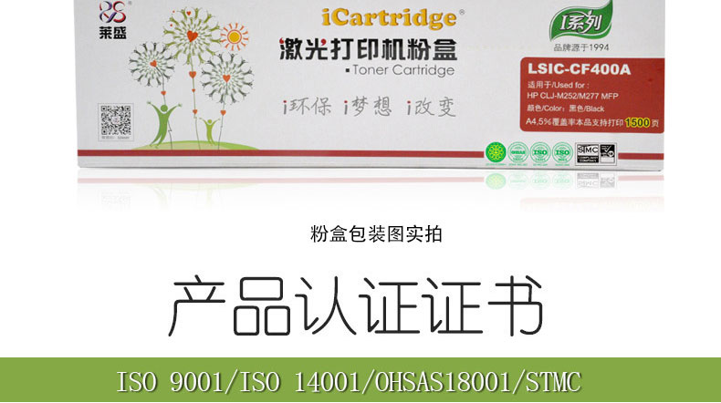 萊盛 iCartridge LSIC-CF400A 硒鼓 適用于HP CLJ-M252/M277 MFP 黑色
