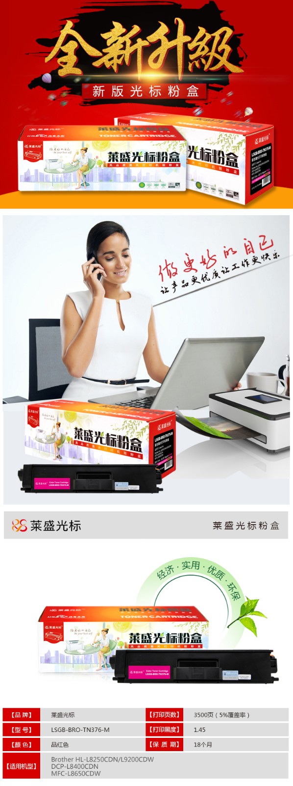 萊盛 光標(biāo)LSGB-BRO-TN376-M 紅粉盒 萊盛兄弟 HL-L8250CDN/L9200CDW/DCP-L8400CDN/MFC-L8650CDW
