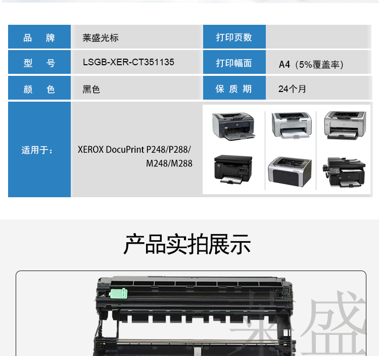 萊盛 光標LSGB-XER-CT351135 黑色 硒鼓 適用于XEROX DocuPrint P248/P288/M248/M288 鼓體 黑色