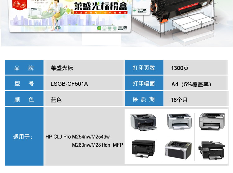 萊盛光標(biāo) LSGB-CF501A青色 粉盒適用于HP m254nw/m254dw/m281fdn/m280fdw 藍(lán)色