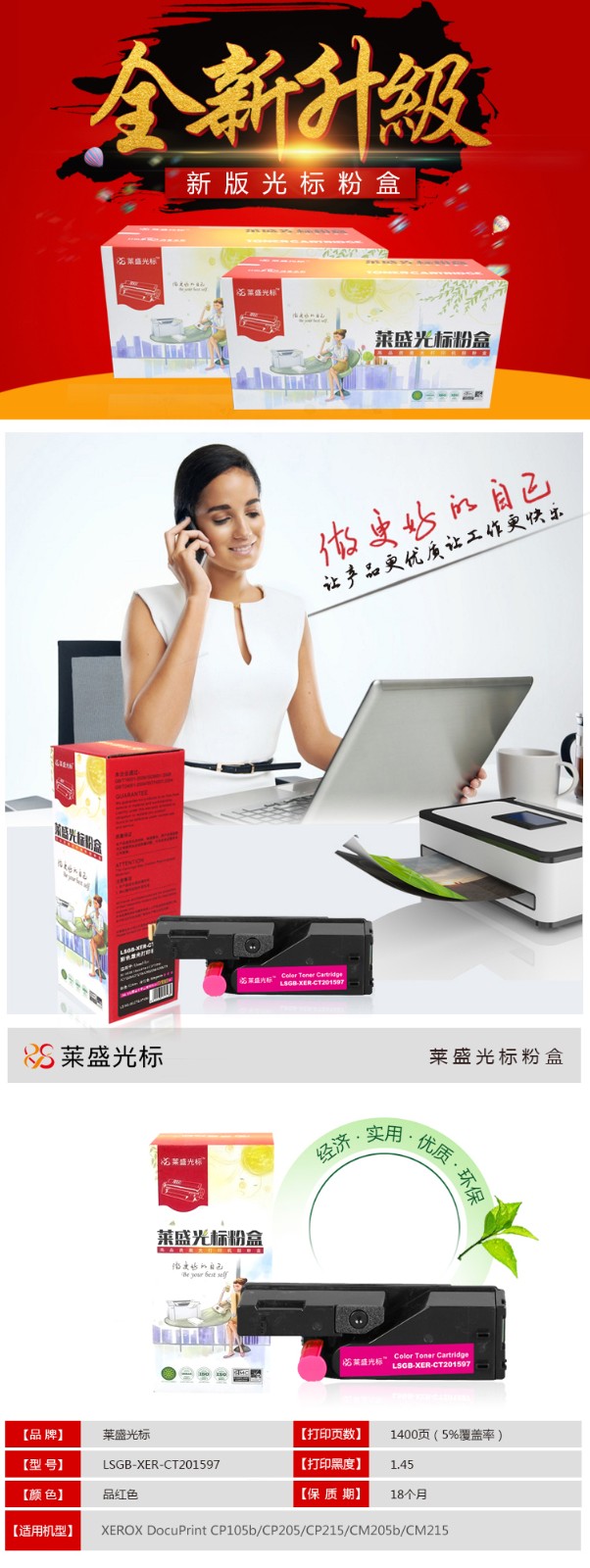萊盛光標LSGB-XER-CT201597紅色粉盒 施樂CP105b/CP205/CP215/CM205b/CM215紅粉盒