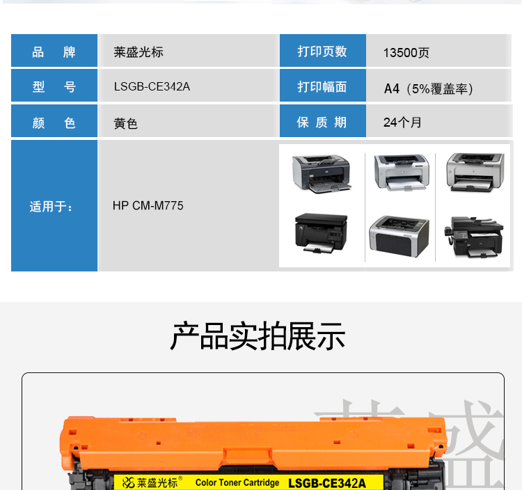 萊盛 光標LSGB-CE342A 硒鼓/粉盒 黃色 適用于 惠普 HP CM-M775