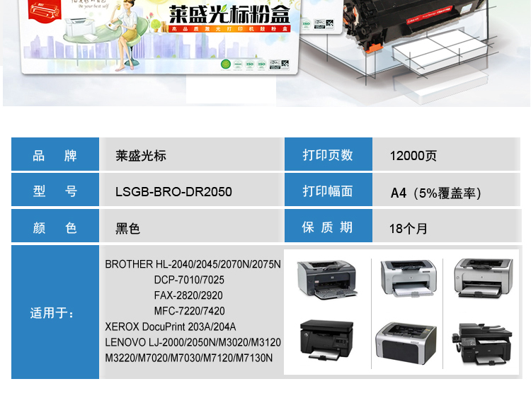萊盛光標 LSGB-BRO-DR2050黑色硒鼓適用BROTHER HL-2040/2045/2070N/2075N 黑色