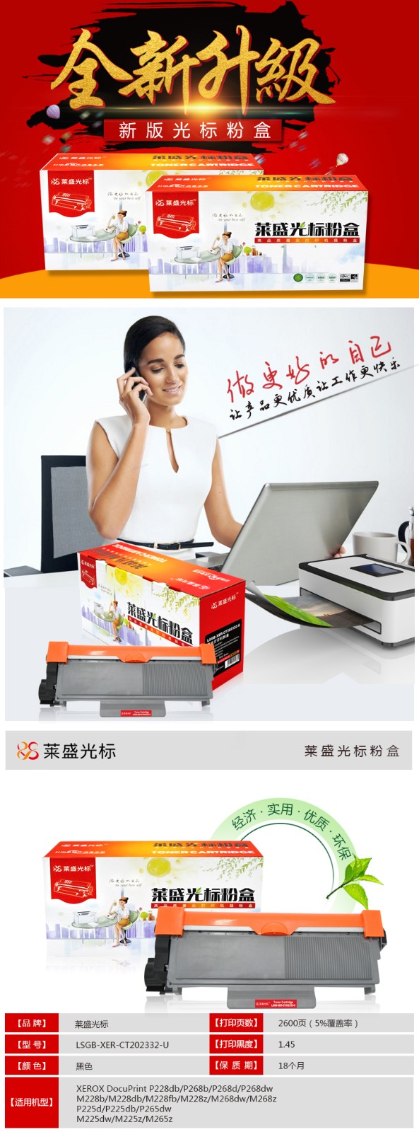萊盛光標LSGB-XER-CT202332-U粉盒 萊盛施樂P228db/P268b/P268d/P268dw/M228b/M228db/M268dw/M268z/P225d/P265dw/M225dw/M225z/M265z粉倉
