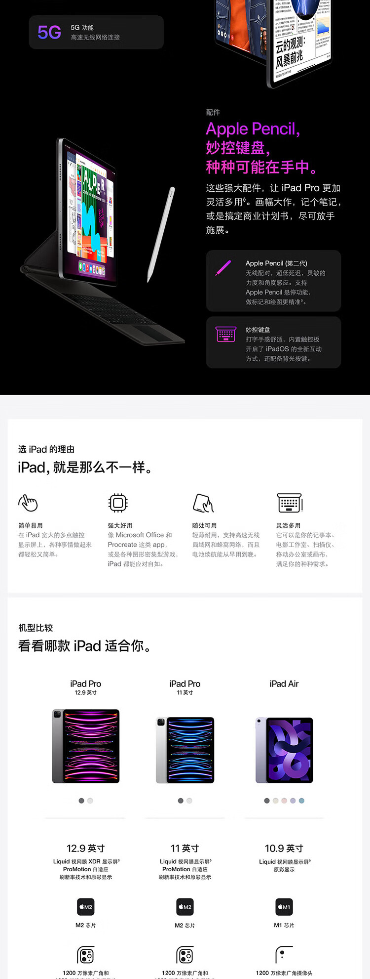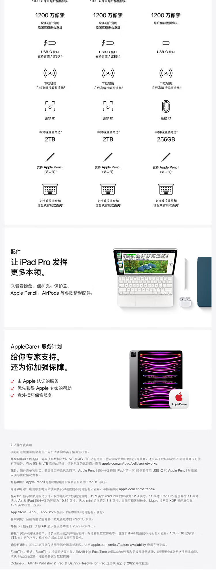 蘋果/APPLE iPad Pro 11英寸平板電腦 2022年款 平板式微型計算機 512G 5G版/M2芯片Liquid視網膜屏/MNYU3CH/A 銀色