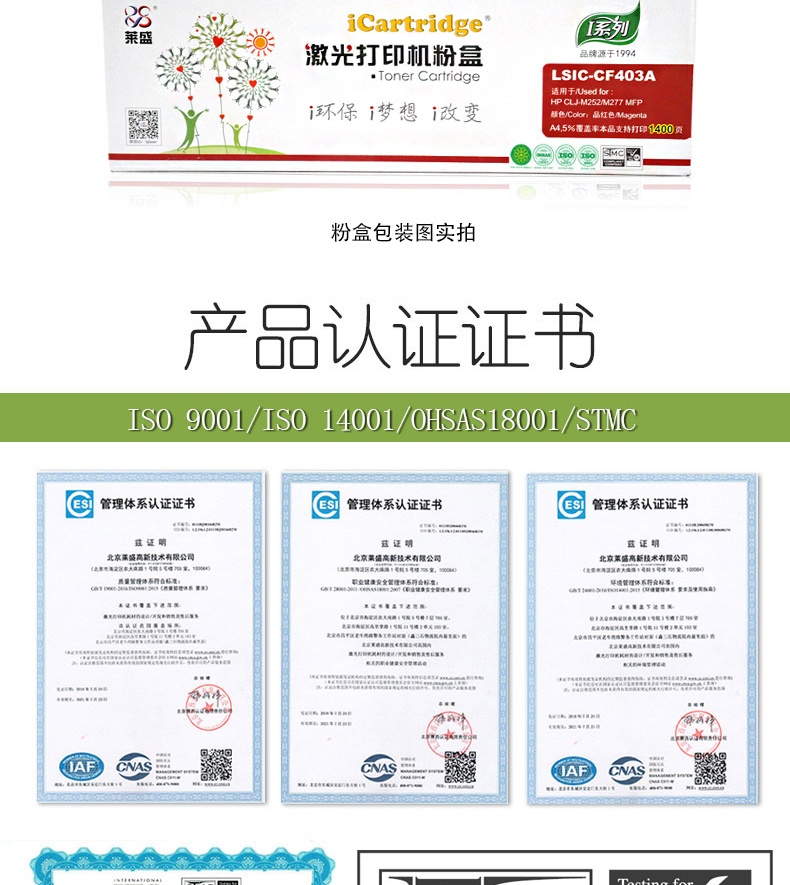 萊盛 iCartridge LSIC-CF403A 硒鼓/粉盒 紅色 適用于 惠普 HP CLJ-M252/M277 MFP