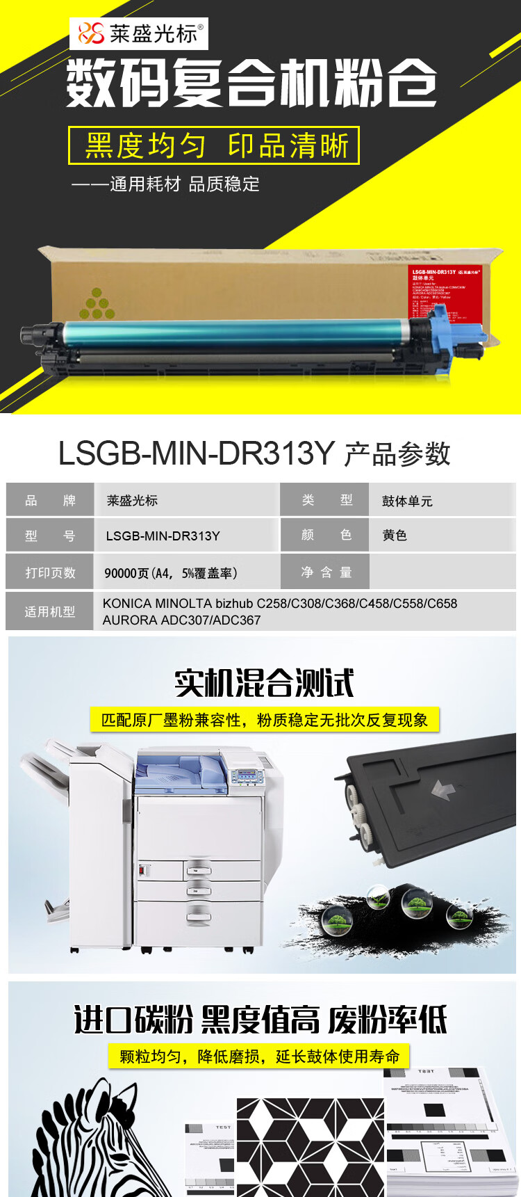 萊盛 光標 LSGB-MIN-DR313Y 硒鼓 黃色 適用于KONICA MINOLTA bizhub C258/C308/C368/C458/C558/C658