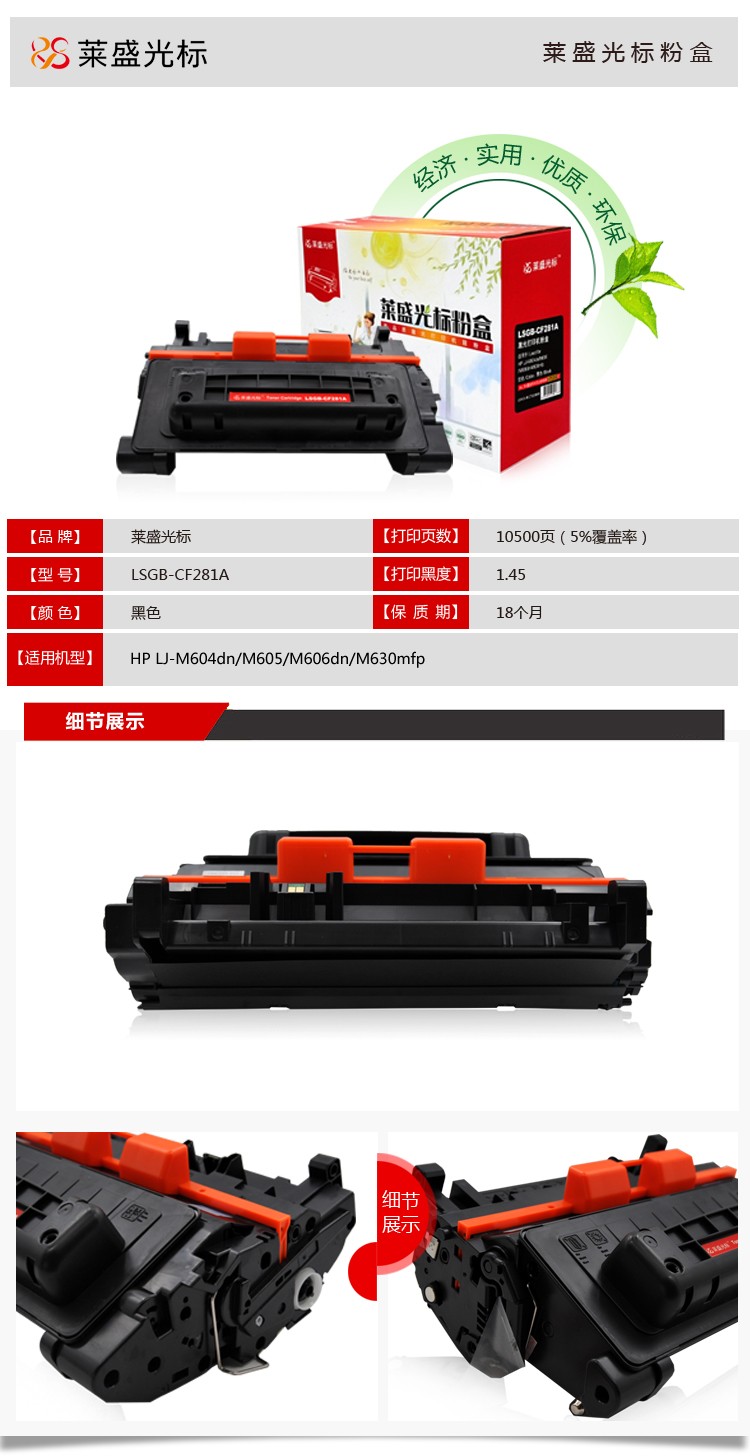 萊盛光標LSGB-CF281A 粉盒 萊盛 HP LaserJet Enterprise MFP M604/605/630/606光標粉盒