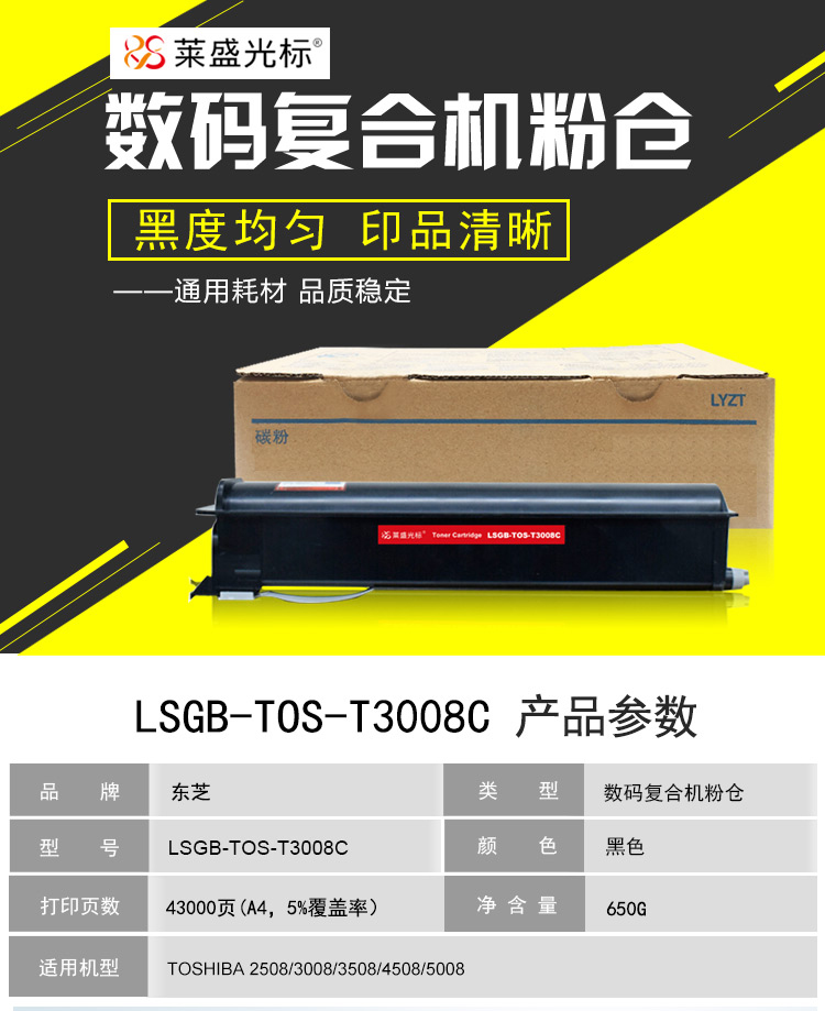 萊盛 光標 LSGB-TOS-T3008C 硒鼓/粉盒 適用于TOSHIBA 2508/3008/3508/4508/5008