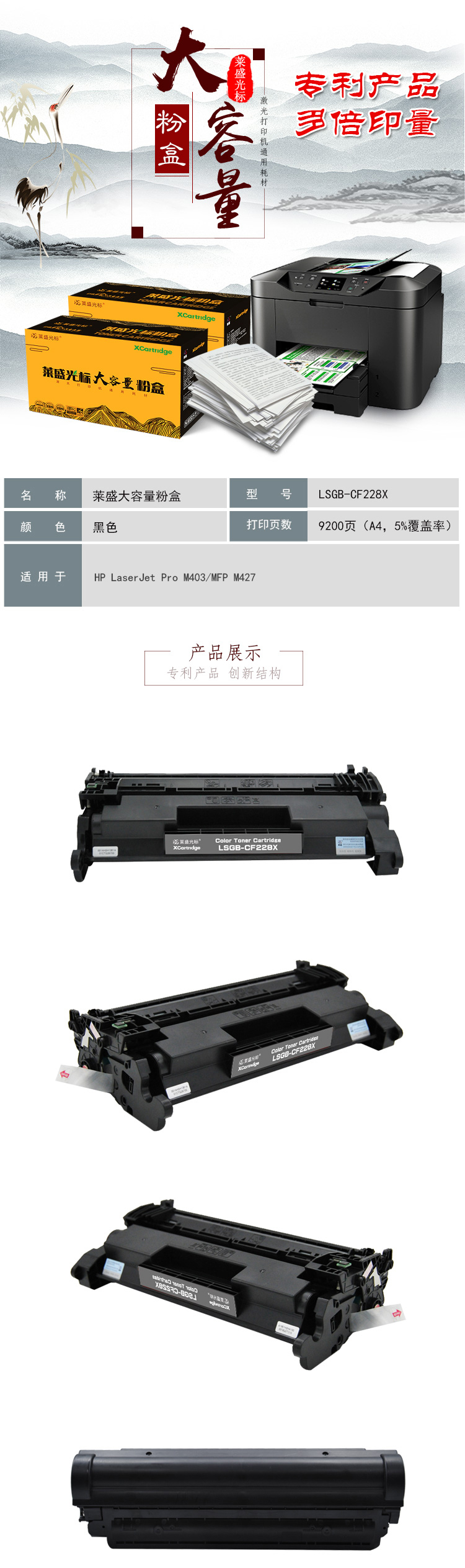 萊盛光標 LSGB-CF228X 硒鼓粉盒(4支裝)大容量HP LaserJet Pro M403/MFP M427