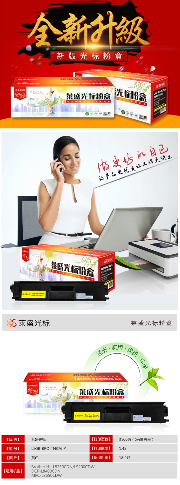 萊盛 光標LSGB-BRO-TN376-Y 黃粉盒 萊盛兄弟 HL-L8250CDN/L9200CDW/DCP-L8400CDN/MFC-L8650CDW