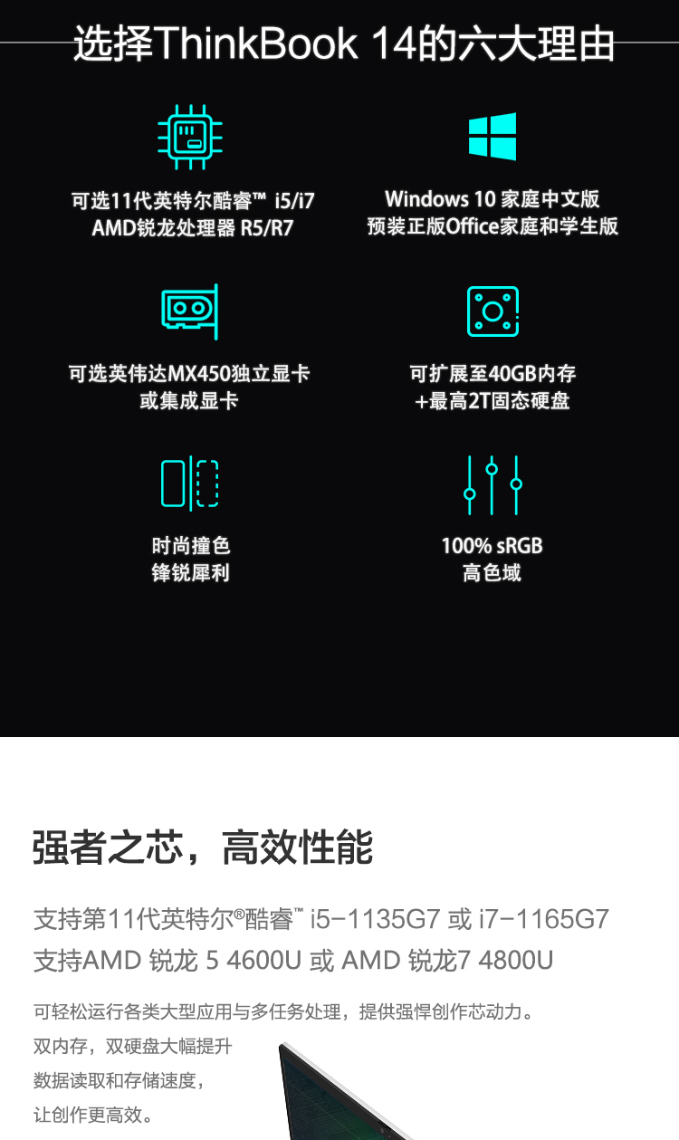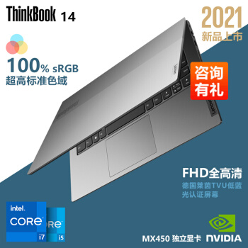 聯想ThinkBook 14 2021款 14英寸輕薄筆記本電腦 【08CD】 11代酷睿i7-1165G7 獨顯 16G 512G 100%sRGB 高色域 標配