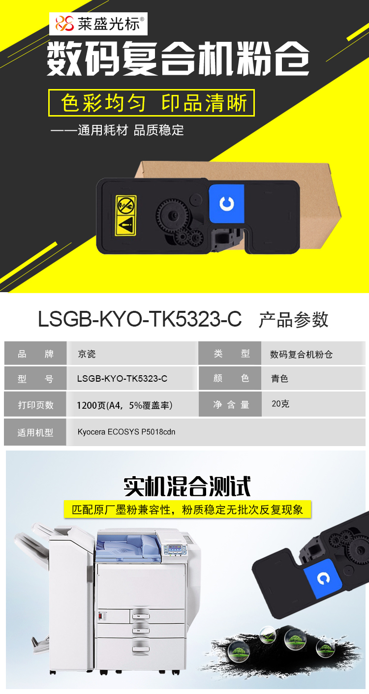 萊盛光標 LSGB-KYO-TK5323-C硒鼓適用于京瓷Kyocera ECOSYS P5018cdn 青色