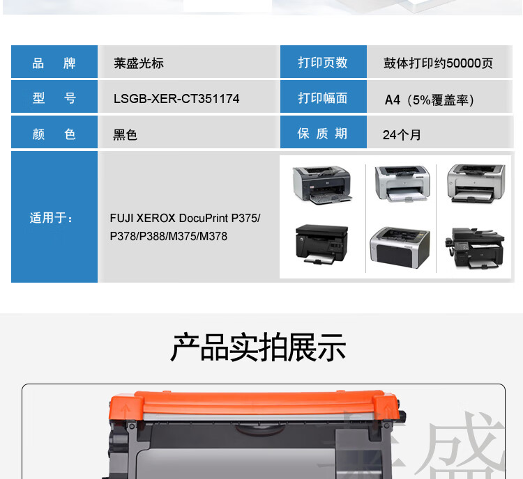 萊盛 光標LSGB-XER-CT351174 硒鼓 鼓體單元 黑色 適用于FUJI XEROX DocuPrint P375/P378/P388/M375/M378