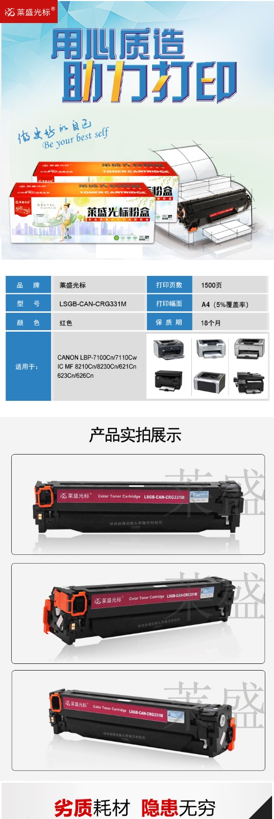 萊盛光標LSGB-CAN-CRG331M 紅色粉盒 萊盛佳能LBP-7100Cn/7110Cw IC MF 8210Cn/8230Cn/621Cn/623Cn/626Cn