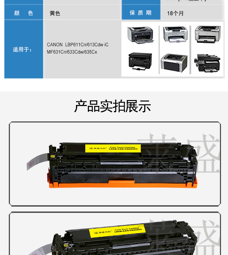 萊盛 光標 LSGB-CAN-CRG045Y 硒鼓粉盒 適用于佳能CANON LBP611Cn/613Cdw Ic MF631Cn/633Cdw/635Cx黃色