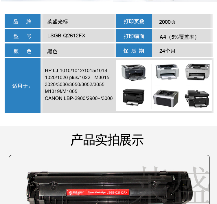 萊盛 光標(biāo) LSGB-Q2612FX 硒鼓 適用于惠普 HP LJ-1010/1012/1015/1018/1020/1020plus 黑色