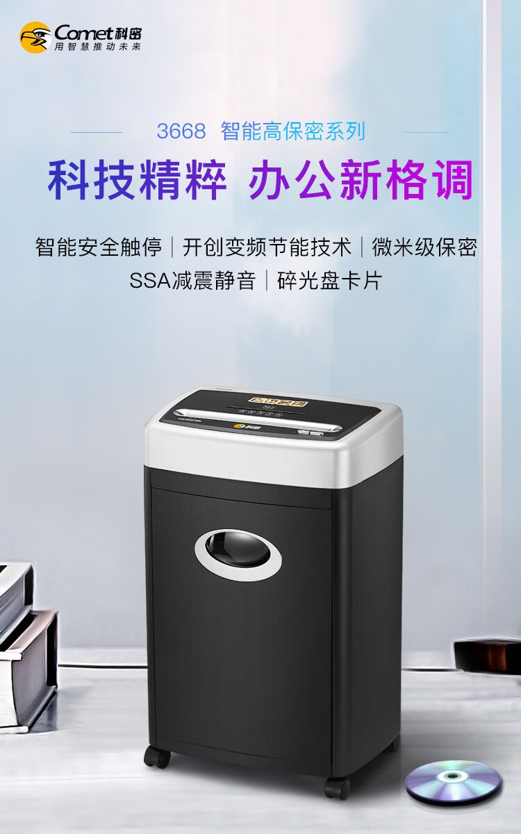 科密 3668碎紙機5級高保密變頻節能 單次7張17L大容量可碎卡光盤連續碎紙30分鐘辦公商用