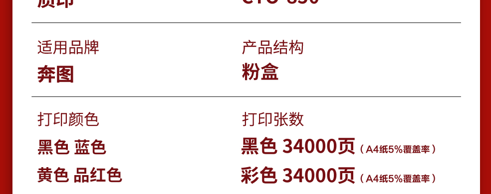 奔圖 CM8505DN墨盒CP9502DN粉盒CTO-850墨粉CP9500DN光電輥8500硒鼓CM8506DN CTO-850(彩色)