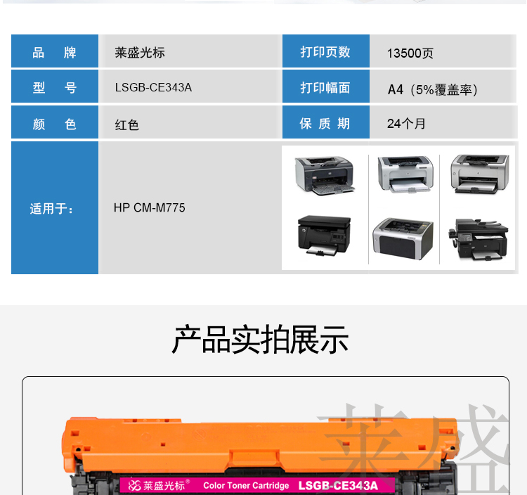 萊盛 光標LSGB-CE343A 硒鼓/粉盒 紅色 適用于 惠普 HP CM-M775