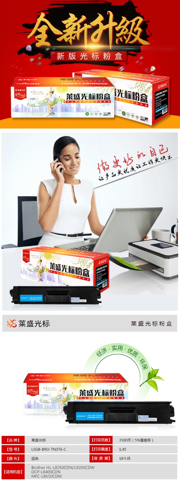 萊盛 光標LSGB-BRO-TN376-C 青粉盒 萊盛兄弟HL-L8250CDN/L9200CDW/DCP-L8400CDN/MFC-L8650CDW青粉盒