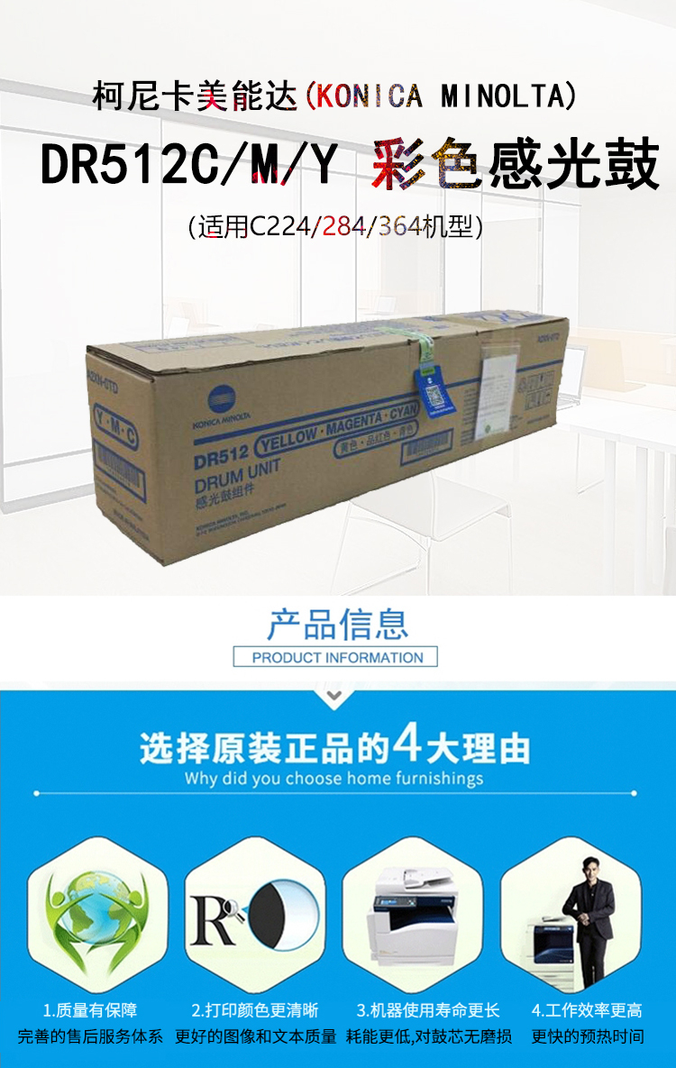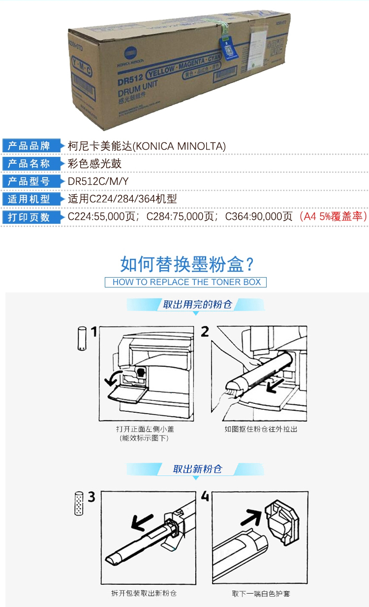 柯尼卡美能達 DR512Y 柯美耗材黃色感光鼓硒鼓 (適用C224/284/364機型)
