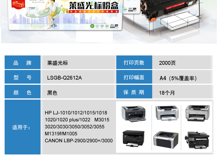 萊盛 光標(biāo) LSGB-Q2612A 黑色 粉盒 適用HP LJ-1010/1012/1015/1018/1020/1020 黑色