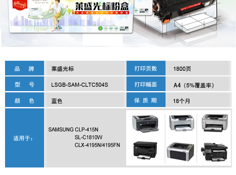 萊盛 光標LSGB-SAM-CLTM504S 彩色硒鼓適用于SAMSUNG CLP-415N SL-C1810W 紅色