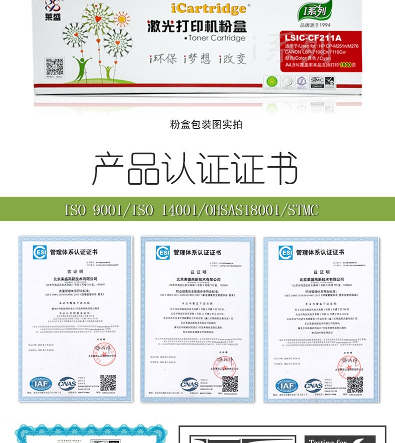 萊盛 iCartridge LSIC-CF211A 硒鼓/粉盒 青色 適用于 惠普 HP LaserJet Pro M251n/M276n/M276nw
