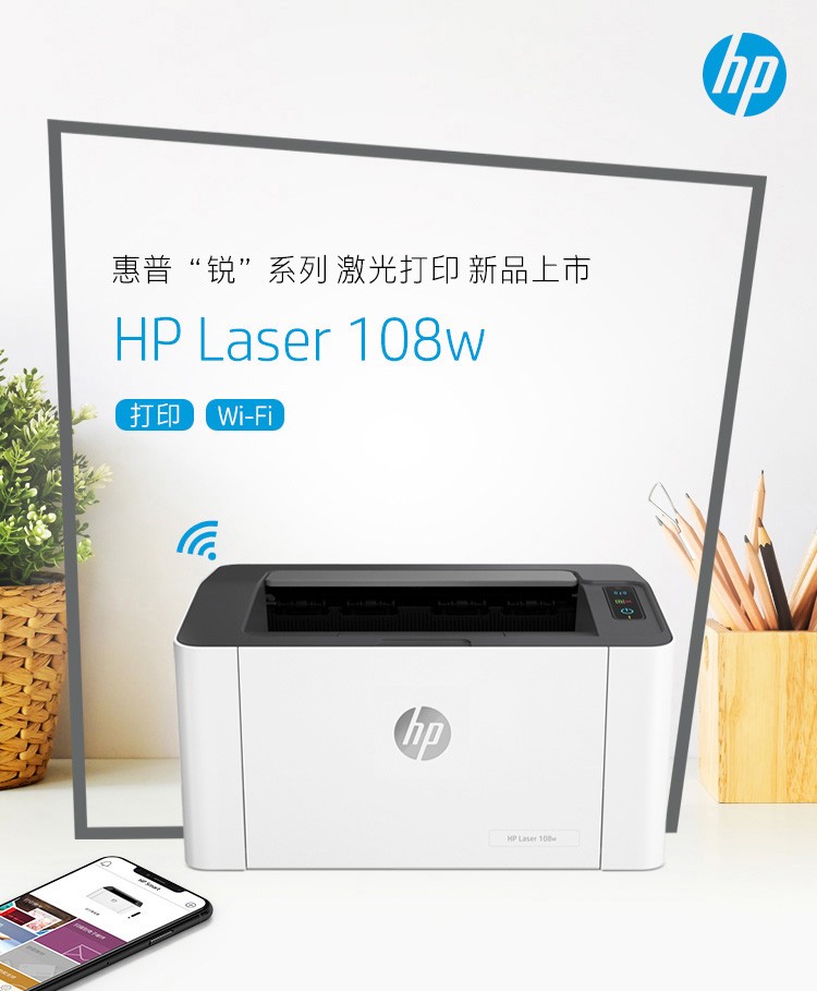 惠普(HP)1108/17w/108w/108a/104a A4黑白激光打印機家用小型辦公同1020 108w(1108升級版無線+滿容耗材)