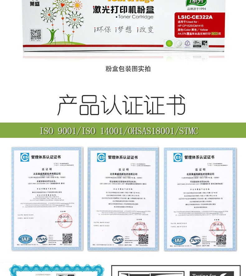 萊盛 iCartridge LSIC-CE322A 硒鼓/粉盒 黃色 適用于 惠普 HP CP1525/CM1415