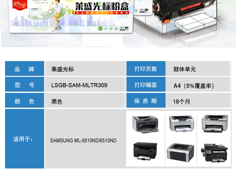 萊盛 光標LSGB-SAM-MLTR309黑色硒鼓/粉盒適用于SAMSUNG ML-5510ND/6510ND