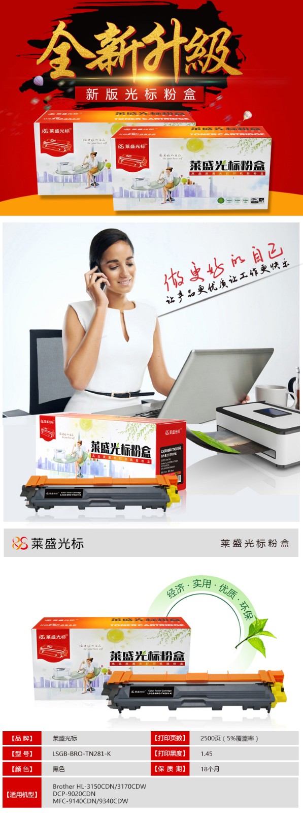 萊盛 光標LSGB-BRO-TN281-K 黑粉盒 萊盛兄弟HL-3150CDN/3170CDW/DCP-9020CDN/MFC-9140CDN/9340CDW